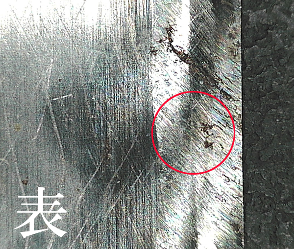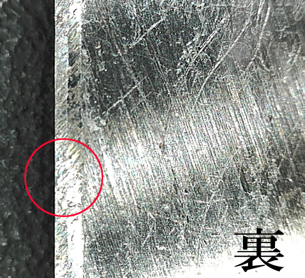 写真ではわかりにくいかもしれませんが、裏押し部分の刃先が段刃状に乱雑に削られていました。
