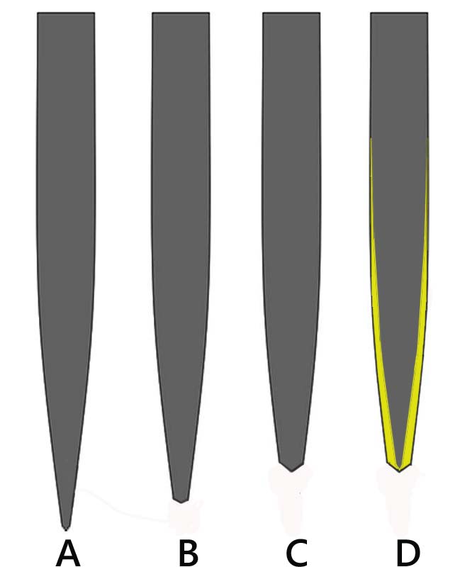 A knife’s cross-section is wedge-shaped: the edge is thin, and it gradually becomes thicker toward the spine. If you keep sharpening only at the same angle on the very edge, the blade will slowly grow thicker at the tip, making it dull. Eventually, it may reach a point where no matter how much you sharpen, it won’t cut properly.